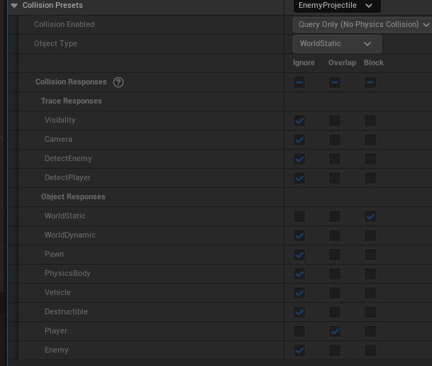- 벽 모서리에 투사체가 자꾸 걸림 => 환경 충돌 콜리전을 작게, 대상용은 크게 분리. 각각 콜리전 채널 다르게 처리