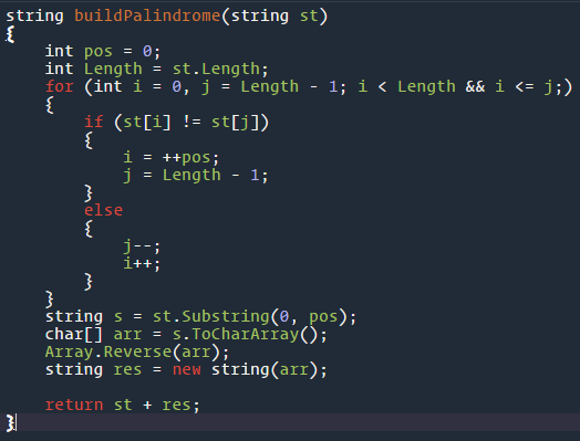 'abcdc'를 뒤집어도 똑같은 문자열이 나오는 최소조건을 만드는 문제이다.