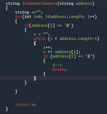 for문을 통해 '@'문자가 나온 후 그 이후에 문자들을 문자열 s에 넣는다.