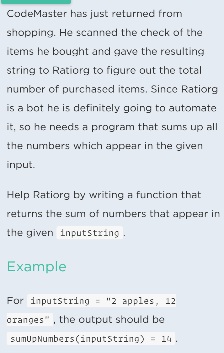 문자열을 체크하여 숫자만 뽑아내어 그 숫자들의 합을 리턴하는 문제이다.