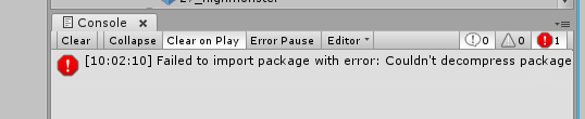 3. 패키지를 export하는 압축 과정중에 아직 끝나지 않은 경우에 유니티를 종료했을 경우