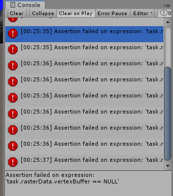 문제점 : Assertion failed on expression: 'task.rasterData.vertexBuffer == NULL'