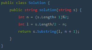 입력된 string의 길이가 짝수인지 홀수인지 체크해주고 중간값을 반환하는 부분이다.