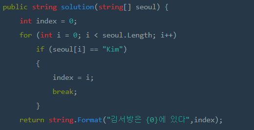 주어진 string[]을 순회하면서 "Kim"을 찾도록했다.